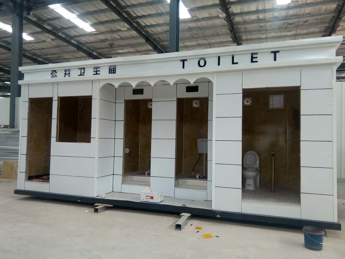 移動(dòng)廁所簡介及制作方法:1、房體結(jié)構(gòu): 采用輕鋼龍骨結(jié)構(gòu),鋼材全部使用標(biāo)準(zhǔn)鍍鋅鋼材。根據(jù)房體的大小特選用國標(biāo)方管(50-100)焊接而成。鍍鋅管厚度為2.8mm,方管經(jīng)過除銹后進(jìn)行鍍鋅、防腐處理,這樣就會(huì)延長廁所使用壽命.2、墻體: 墻板采用金屬雕花板,金屬雕花板是保溫、隔熱、環(huán)保、阻燃、防雨、防凍、隔音、抗震等...
