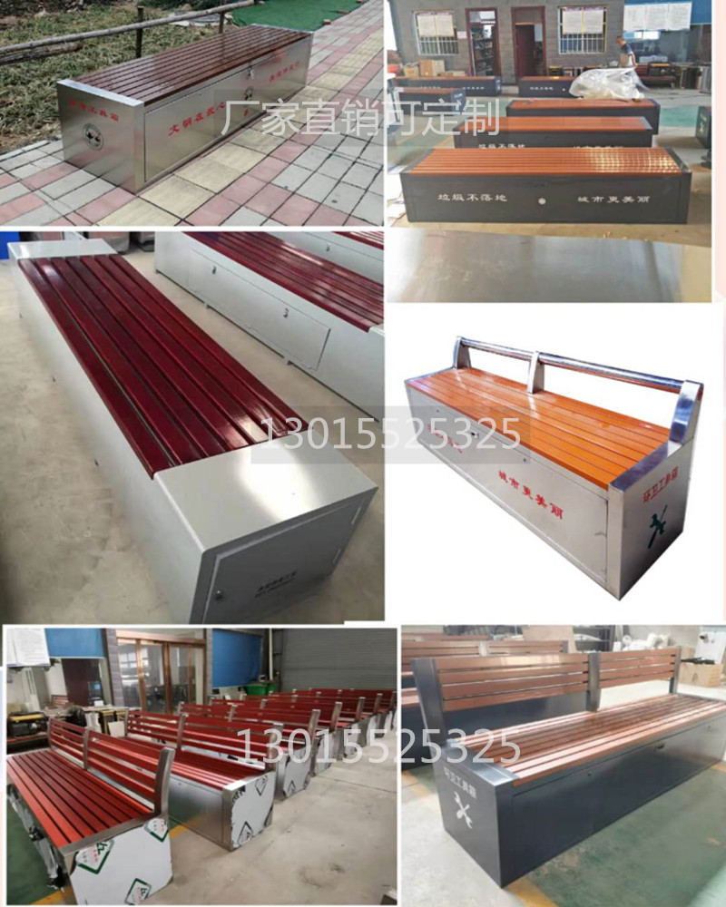 環(huán)衛(wèi)工具箱:也叫保潔員工具箱,環(huán)衛(wèi)工具椅,保潔員休息座椅,市政保潔箱等。工具箱常用尺寸為:長2400*寬500*高550mm,也可以做成2米,2.4米,2.7米等,寬度和高度也可以定做,滿足不同客戶、不同場所的使用要求。